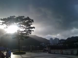 I witnessed one of the stranger things in my life today as I was heading back "home". The sky was as blue and as cloudless as it could be and it was raining! But right next to this were really dark clouds and NO rain at all! I tried to bring out my camera to film this, but it stopped as quickly as it had begun. I did manage to get a nice picture of the aftereffect though, it was quite nice.